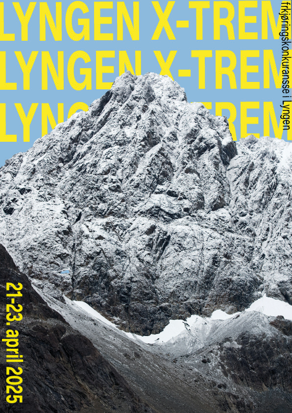 Lyngen X-trem 2025 er en fiktiv frikjøringskonkurranse utviklet for min drømmebedrift, FriFlyt. Prosjektet består av en helhetlig visuell identitet på trykte og digitale flater: Plakat, roll-up, brosjyre om bærekraft, LinkedIn-karusell, digitale reklamebannere, Facebook-cover og nettside. Uttrykket bygger videre på FriFlyts profil, med typografi, farger og bildebruk. Inspirert av ekstremsport og skikjøring har jeg utviklet et energisk uttrykk, preget av sterke kontraster, der gult fungerer som signalfarge og forsterker assosiasjonene til adrenalin.